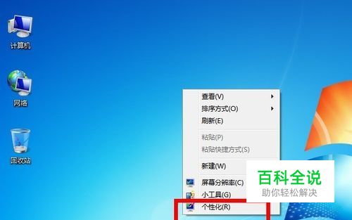 在桌面空白处点击鼠标右键,选择个性化!如下图所示
