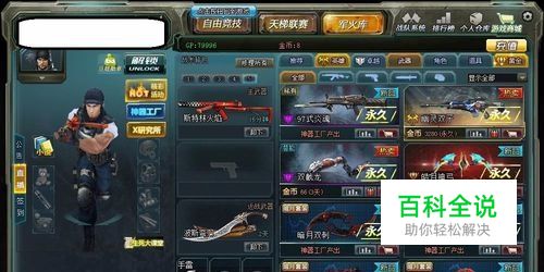 打开游戏,最简单的就是到商城(右上角)买一把,但是很贵很贵,汇率1RMB=10金币,一把永久的武器通常上千金币,折合上百RMB。