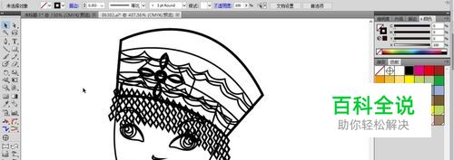 用钢笔工具画出女孩的脸部表情线条还有头上配饰的细致线条。