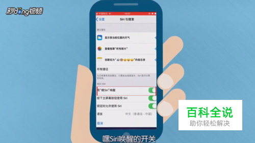 然后打开“用嘿Siri唤醒”的开关。
