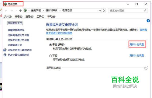 找到所选择的电源计划,点击右侧的更改计划设置。这里我电脑选择的平衡,如果你选择的是节能,那么就点击节能右侧的更改计划设置。
