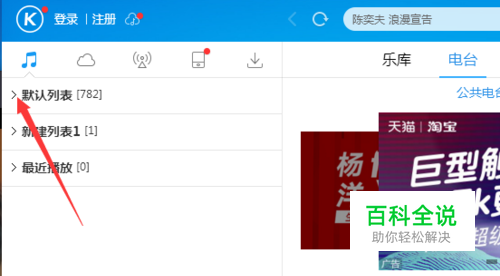 首先,打开一个的酷狗音乐播放器的播放器界面当中,选中为 默认列表 的选项。