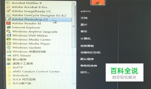 点击电脑左下角开始—所有程序—Adobe Photoshop CS软件或双击桌面该软件的快捷方式(前提是电脑装了此软件),打开软件,进入初始界面。