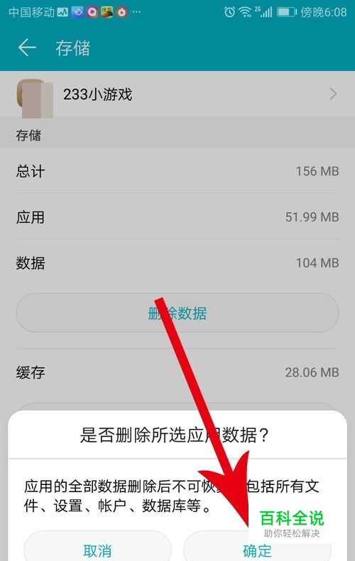 打开“是否删除所选应用数据?”弹窗后,查看提示后点击“确定”,这样就可以退出233小游戏了