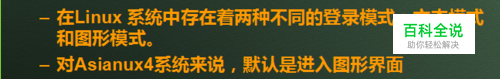 Linux系统的启动 注:用户如果需要从文本模式进入图形界面,可以输入startx命令。 修改在/etc的inittab文件,用户可自定义登录模式。
