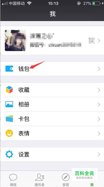 首先我们登录微信后在“我”的页面里点击钱包。