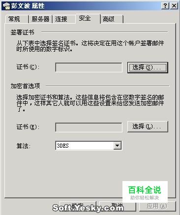 选择上面的“安全”标签,可以看到 “签署证书”和“加密首选项”两栏。通过相关设置,我们可以进行邮件的签署和加密。如图所示。