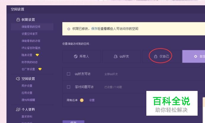 设置完后,记得点击保存,从现在开始,所有人就能看你的空间了,你的空间就解封了。