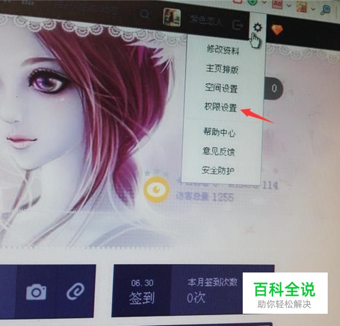 先进入空间,点空间有右上角那个设置,再点权限设置。如图所示。