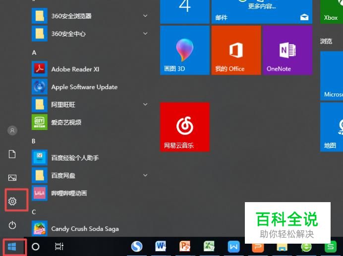 首先,我们点击电脑左下角的微软按钮,弹出的界面,我们点击设置;