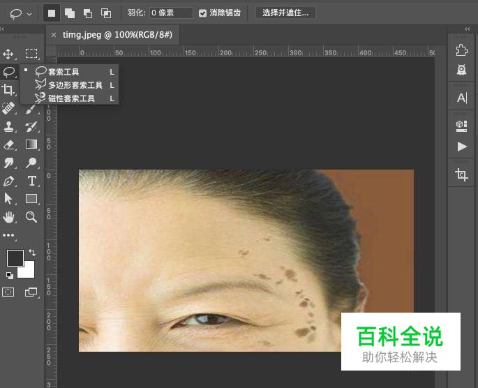 打开电脑中的PS软件,拖入需要进行处理的图片,在工具栏中选择“套索工具”