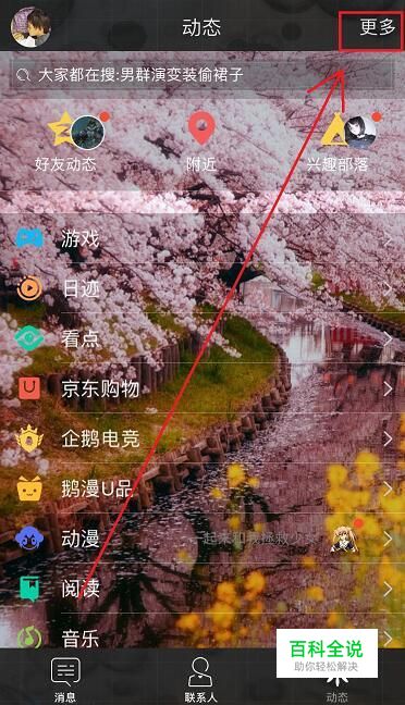 首先,打开手机QQ,在下方列表中,选择进入“动态”界面,点击界面右上角的“更多”选项。