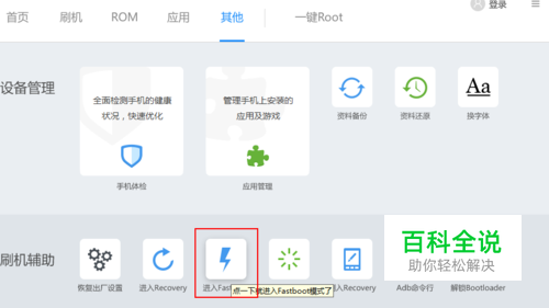 最后在【其他】界面刷机辅助中点击『进入Fastboot』即可。