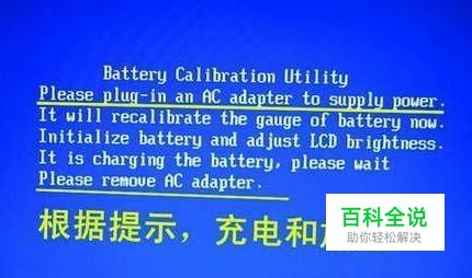 图2 根据屏幕提示进行操作 step 4 :这个过程需要一段时间,等电池耗尽自动关机后,然后接上电源适配器给电池充电,但不要开机。等充电完毕(充电指示灯熄灭)后,电池校正的过程才算完成。