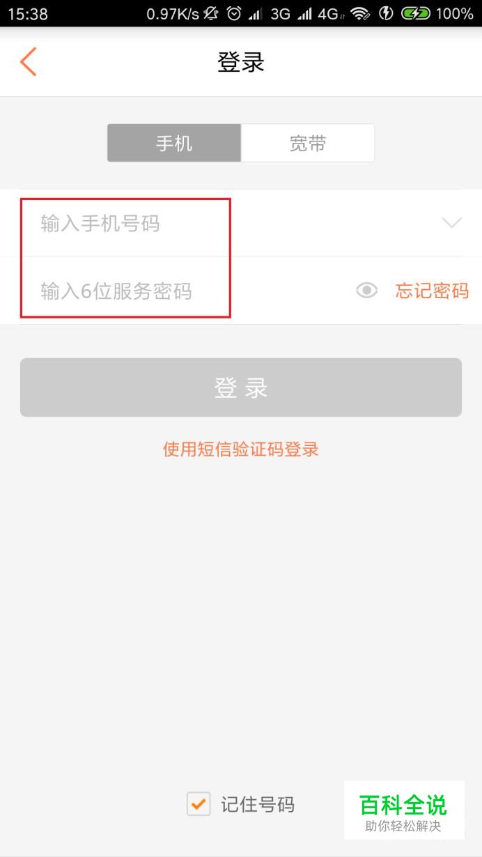 这里以中国联通手机营业厅APP为例,打开APP页面之后,使用手机号码和服务密码登录。