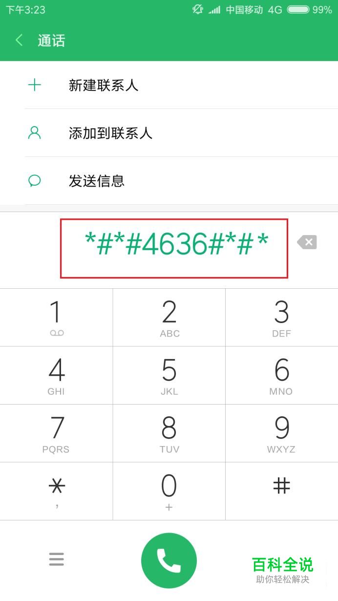 首先,在MIUI系统中,打开“电话”应用按钮,在拨号键盘页面中输入*#*#4636#*#*关键字,进入测试应用页面。