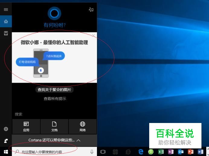 启动Windows 10操作系统,如图所示。点击任务栏搜索框,开始使用Cortana(小娜)智能语音助理。