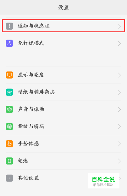 点击桌面的【设置】--进入通知与状态栏。