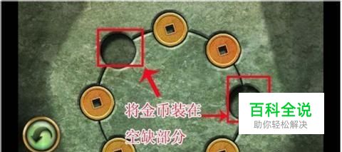 进入失落之城场景37游戏界面之后,中间石壁上有一圈金币,好像还少了两颗金币,我们点击放大查看(如图红框所示)。