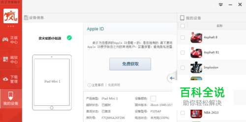 电脑版我就简单说一下,到他们官网下载电脑版的疯子苹果助手,然后到我的设备中点击免费领取之后填写一下信息就好了