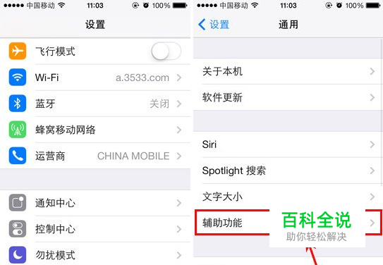 很多使用iphone的朋友都很心疼HOME键,小编也不例外。通常大家都是使用“iphone的小白点”来代替home键的使用频率。那么iphone5s的小白点在哪设置呢?下面就由小编给大家讲解愿意下吧! 1)首先,点击“设置”进入,接着点击“通用”。进入“通用”界面后点击“辅助功能”按钮。(如下图所示) 2)在“辅助功能”界面,大家就能看到“AssistiveTouch”功能,点击进入,然后打开该功能按钮即可。(如下图所示)