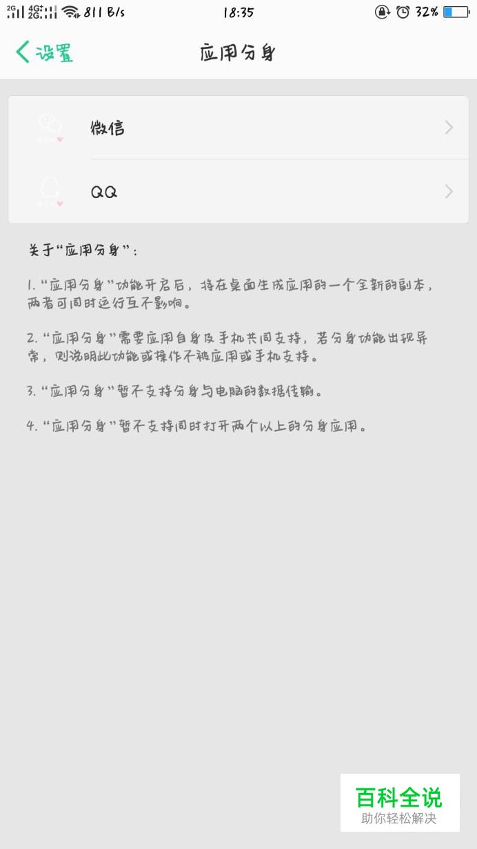 此时就会有可分身的APP出现,例如“QQ”和“微信”。