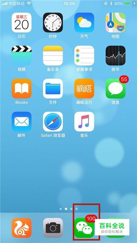 首先在我们的手机桌面上找到微信并点击它,如下图所示。