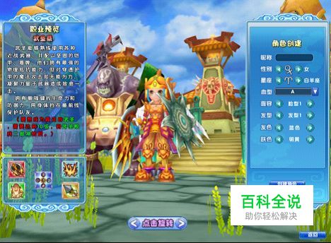 画面左侧是职业预览信息,点击四周的四个按钮即可查看游戏中各个职业的基本概况,让您对各个职业有一个基本的了解。