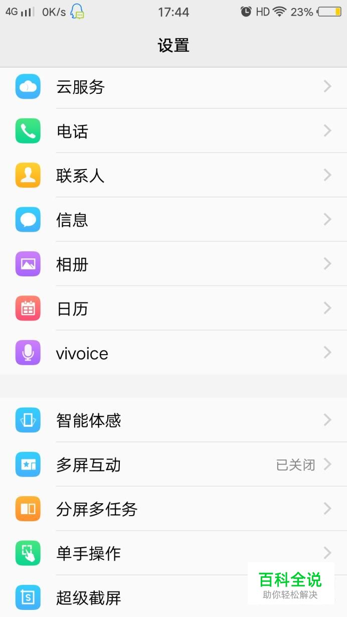 点击“设置”,进入到以下界面,一直向下滑,可以找到“vivoice”,这便是vivo手机自带的语音助手。