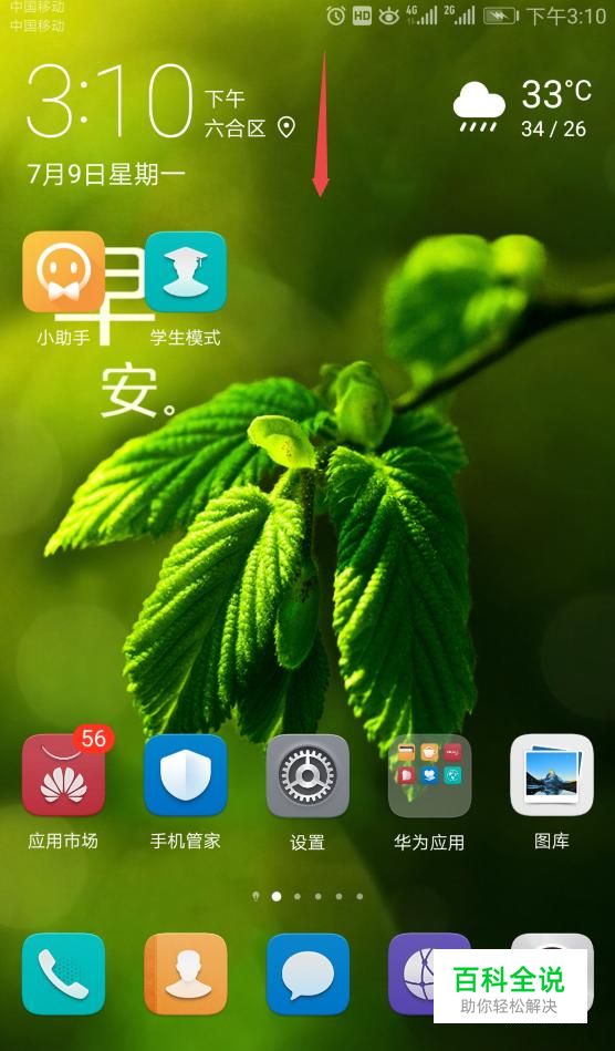 首先,我们打开我们的手机,然后我们下拉上端的菜单栏;