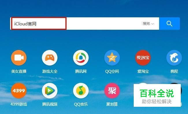 首先在搜狗浏览器中输入iCloud官网并点击回车键,如下图所示。