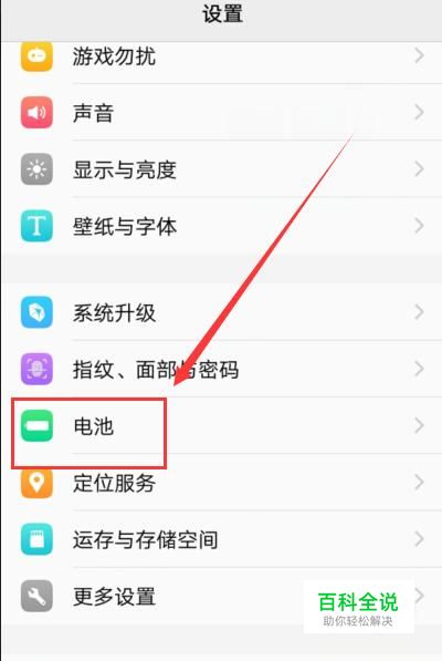 打开手机设置,找到电池选项,点击并进入,如图所示。
