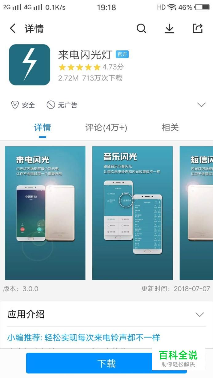 打开vivo手机应用商店,搜索“来电闪光灯”将其安装到手机上面,如图所示。