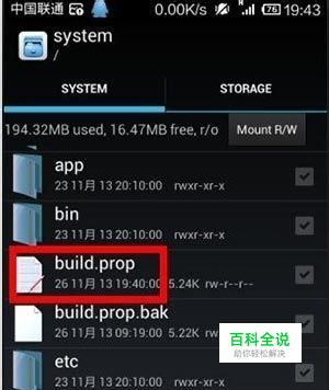 2.打开RE管理器,然后在ROOT目录下找到system文件夹下的build.prop文件。