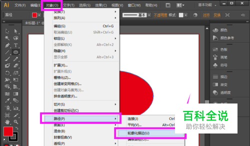 如果我们忘记了ai中轮廓化描边的快捷键,可以直接在对象菜单栏中查找就可以了。