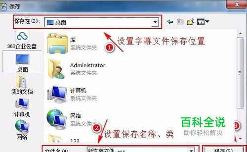点击执行校准按钮之后弹出保存对话框,在当前对话框中设置字幕文件保存的位置、名称、保存类型和编码,最后点击“保存”。字幕的保存类型一般建议是保存为“ASS”格式,因为添加特效后的字幕只有保存为ASS格式才会在视频上显示出来,如果字幕没有添加特效就可以保存为第一个Srt格式。字幕编码设置为UTF-8。