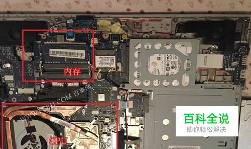 八、联想Z500笔记本后壳拆卸下来后,我们就可以看到笔记本内部结构了,包括CPU、内存、硬盘等硬件可以直接看的到,下图为联想Z500笔记本拆机内部结构示意图。