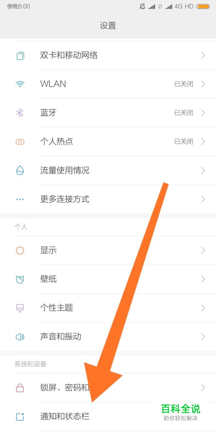 然后点击进入“通知和状态栏”设置选项。