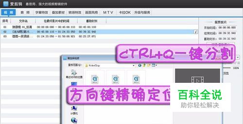 在“视频”面板,点击列表左下方的“添加视频”按钮,即可在弹出的对话框中选择视频导入(可一次导入多个视频)。 使用鼠标拖拽预览画面下方的进度条,配合方向键可以精确定位到某一帧(左右键5秒移动,上下键逐帧微移);使用快捷键Ctrl+Q可以一键分割视频。