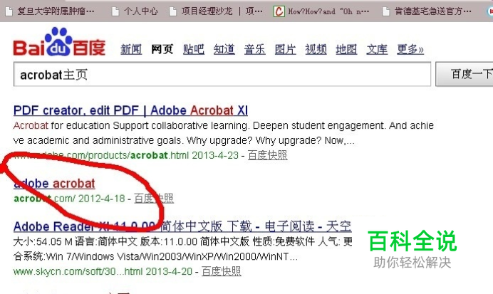 打开浏览器,进入acrbat主页,或在百度搜索直接搜索acrobat主页,点击进入acrobat主页
