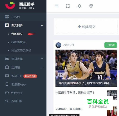 3、点击“图文同步”按钮进入到图文列表页,找到刚刚所生成的图文,点击下图箭头所指的“编辑”按钮,进入图文编辑详细页。