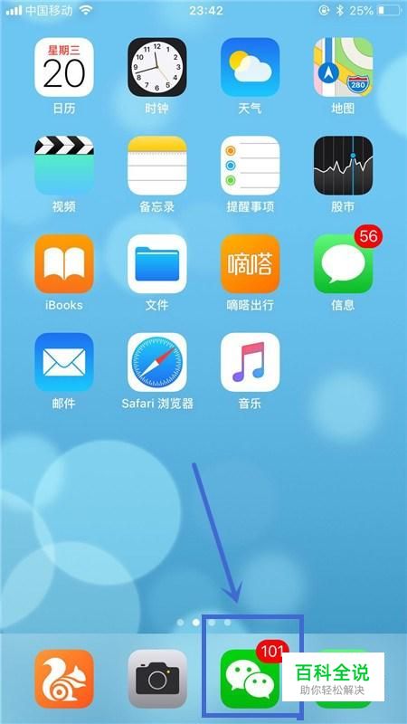 首先在我们的手机桌面上找到微信并点击它,如下图所示。
