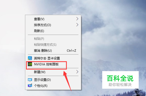 回到桌面,右键单击空白处,选中nvidia控制面板进入,如下图所示
