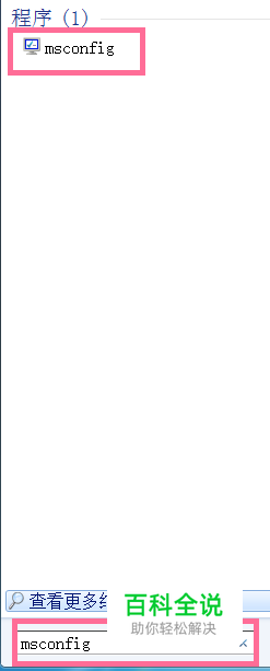 点击左下角【开始】键在程序栏中输入【msconfig】按回车键确定在弹出的程序对话框中选择最上方的程序并点击