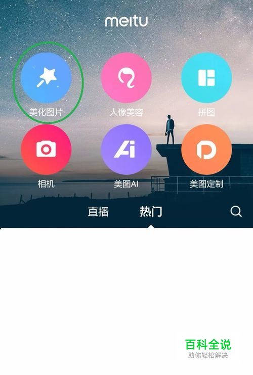 第一步:打开美图秀秀软件,点击“美化图片”。