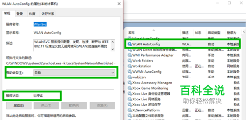 在打开的【服务】列表,找到【WLAN AutoConfig】服务,然后双击打开属性窗口,我们可以确定【启动类型】为【自动】,【服务状态】为【已停止】,点击【启动】无法启动