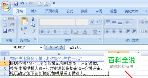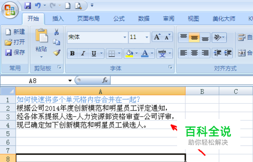 如下图多个单元格如何快速合并在一个单元格呢?以实例介绍大家。