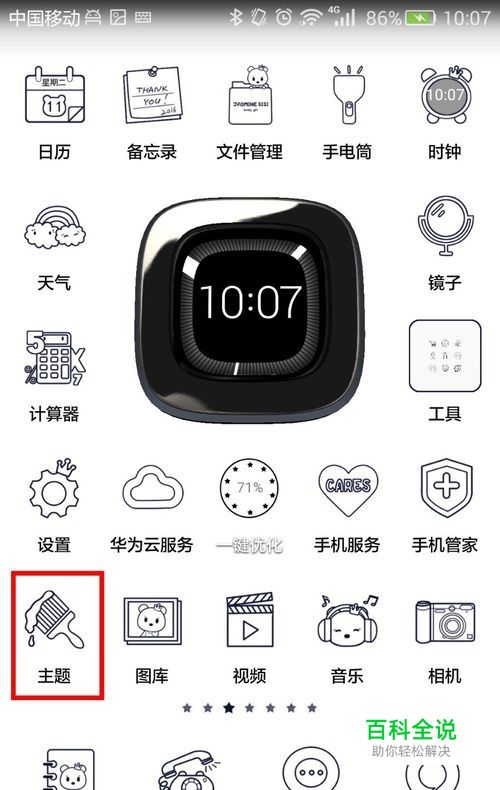 打开手机,找到“主题”图标。进入手机的壁纸等主题设置。