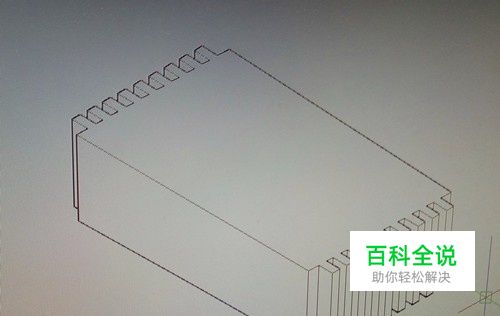 接着我们把小长方体进行阵列:点击主菜单“修改”→三维操作→三维阵列。用“三维阵列”命令阵列9个间距为1mm的长方体,阵列后如下图二。