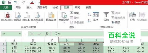 选中语数英三列,选择“数据”选项卡。